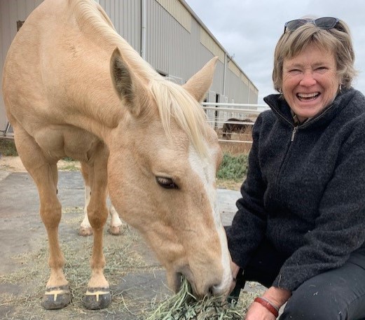 My friend Winnie receives her hay in a mesh bag.